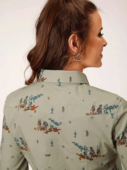 Roper 03-050-0064-0303 Womens Long Sleeve Vintage Western Print Brown