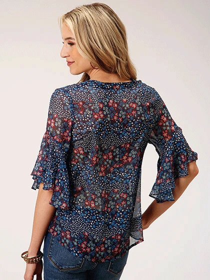 Roper 03-051-0590-3011 Womens Ditzy Floral Print Blouse Blue