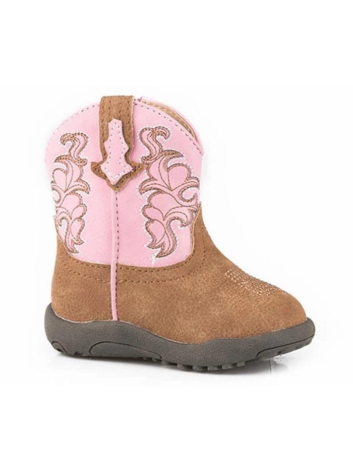 Roper 09-016-0191-2784 TA Infants Blaze Pink Western Stitch Cowbabies Boot Tan