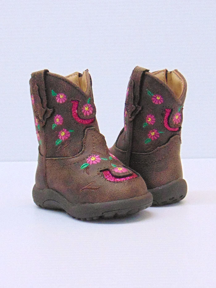 Roper 09-016-1903-2171 Infants Floral Embroidery Lucky Horseshoe Cowbabies Boots Brown