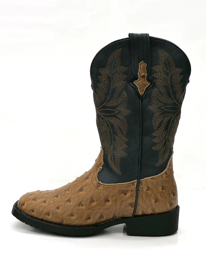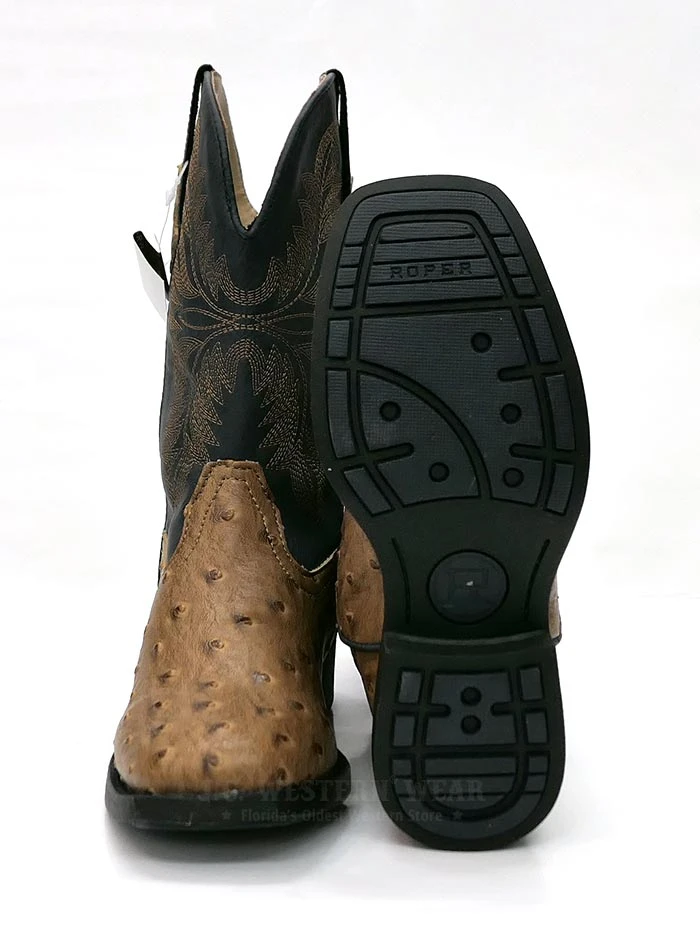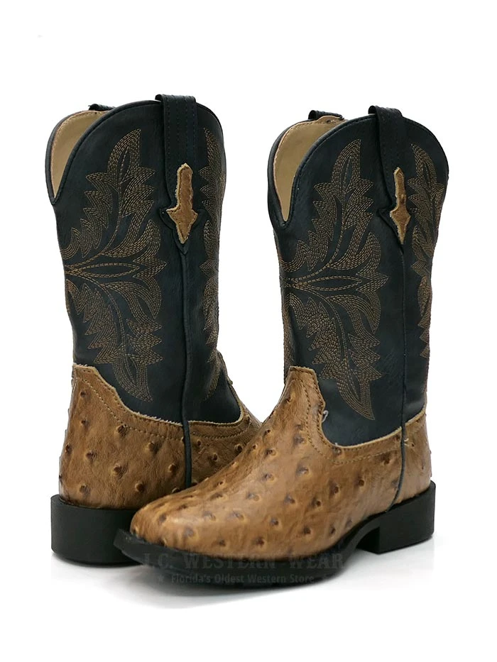 Roper 09-018-1224-1526 TA Kids Cowboy Cool Ostrich Square Toe Western Boot Tan/Navy