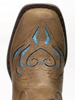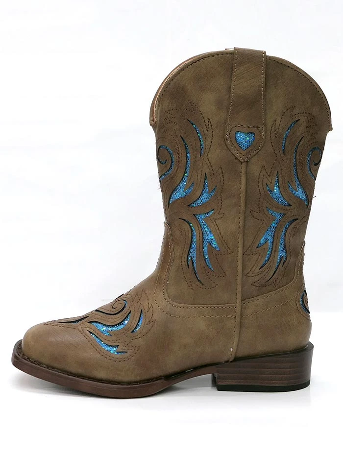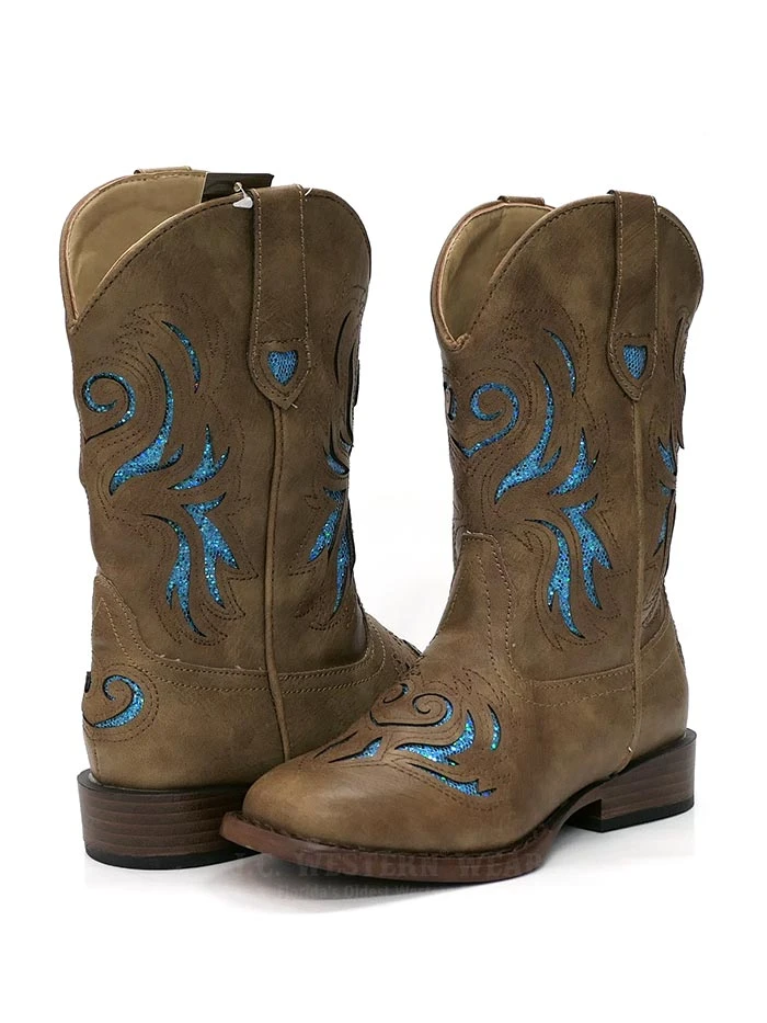 Roper 1549TA Kids GLITTER BREEZE Square Toe Bling Cowgirl Boot Tan
