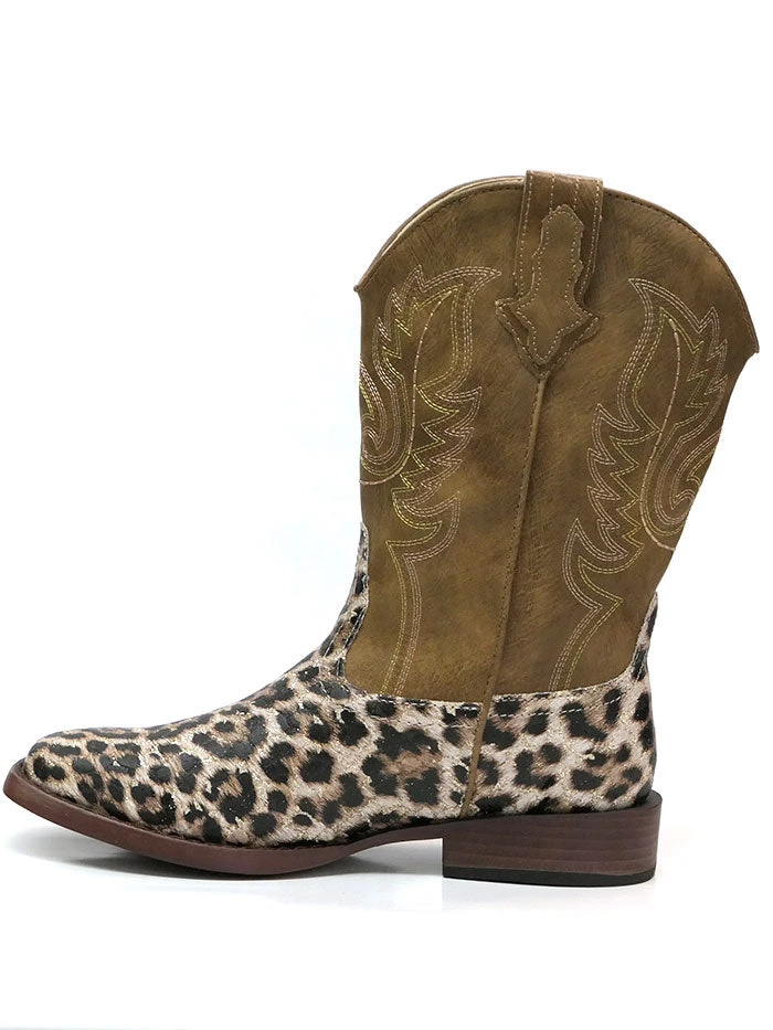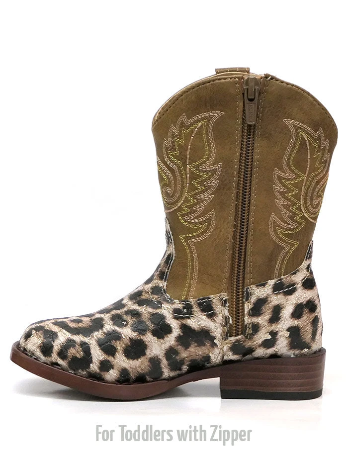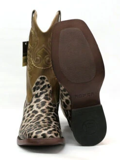 Roper 2800 Kids Leopard Print Square Toe Western Boot Tan