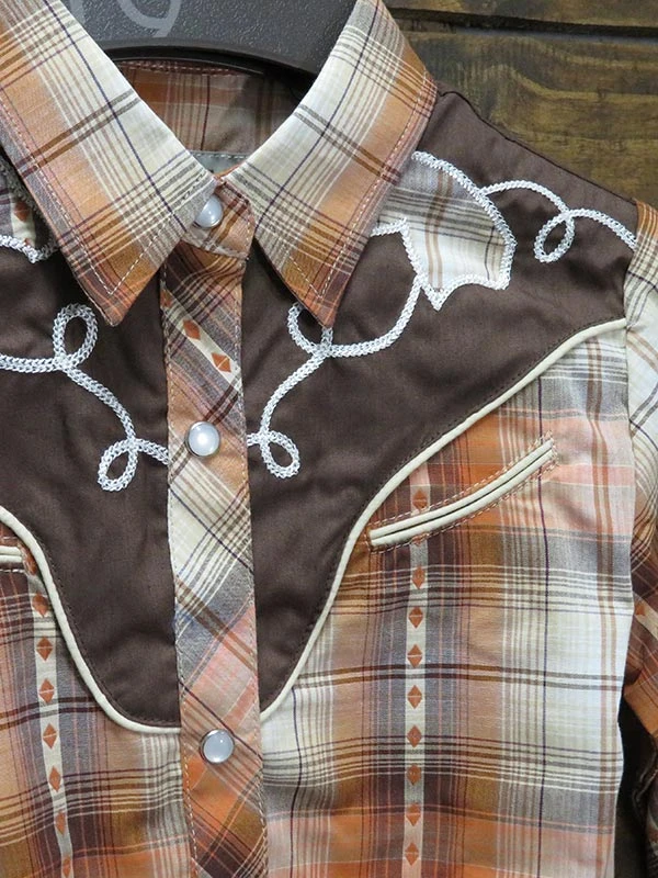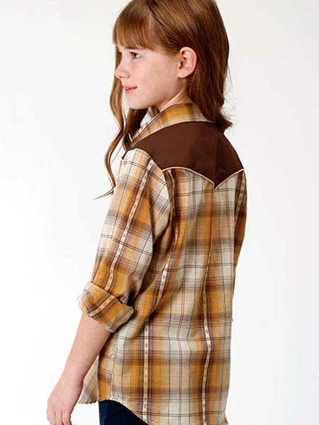 Roper 6003OR Girls Fancy Applique LS Western Plaid Shirt Cream