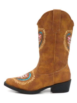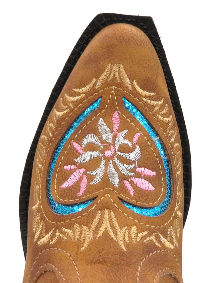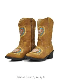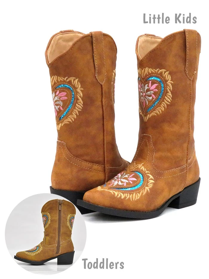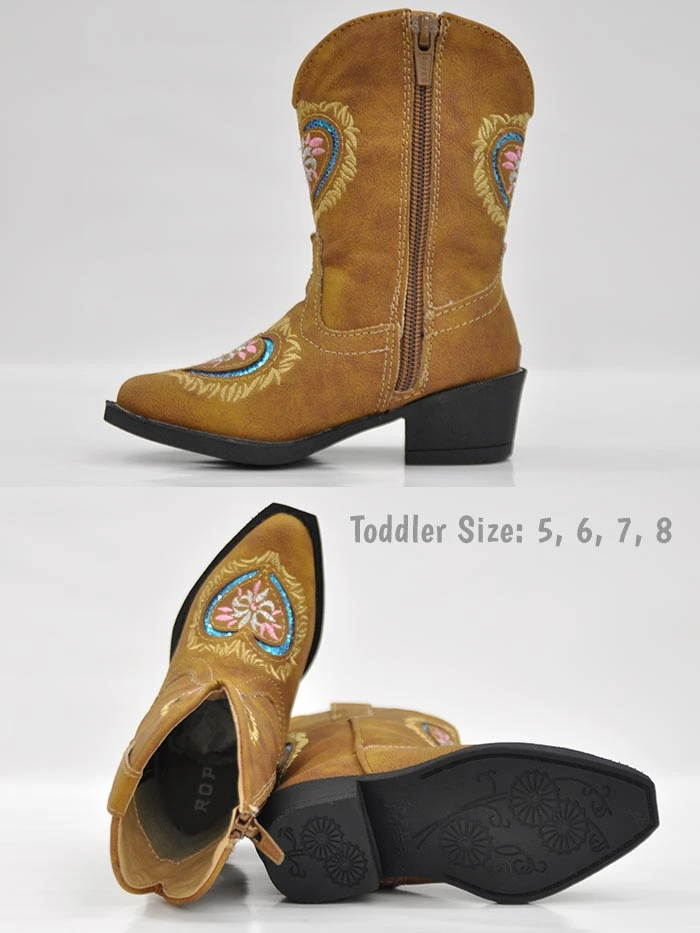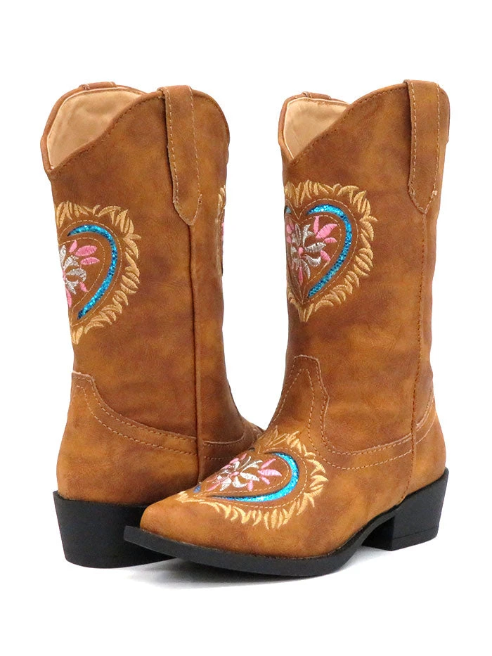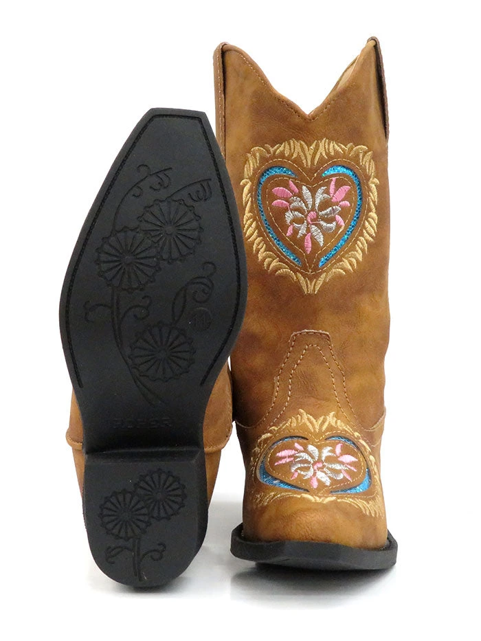 Roper Kids Embroidered Glitter Heart Tan Western Boots 2401TA