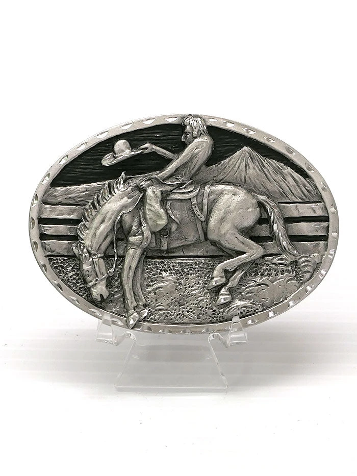 Saddlebronc Rider Scene Solid Pewter Belt Buckle 5785