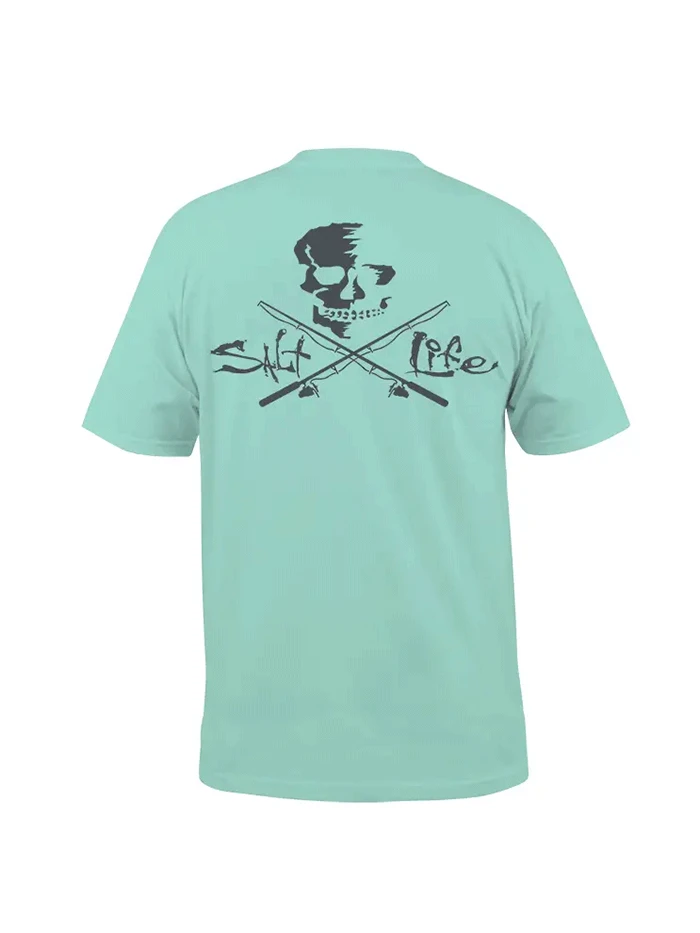 Salt Life SLM10266 Mens Skull and Poles Short Sleeve Pocket Tee Aruba Blue – The Skull and Poles short sleeve pocket tee features a screenprinted logo on the left chest and back. Our Salt Life ringspun cotton tees provide an ultra soft feel and comfortable fit.