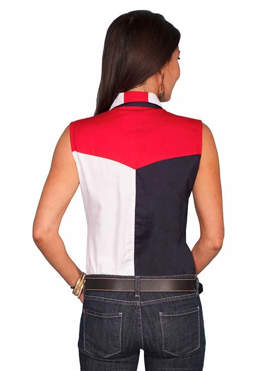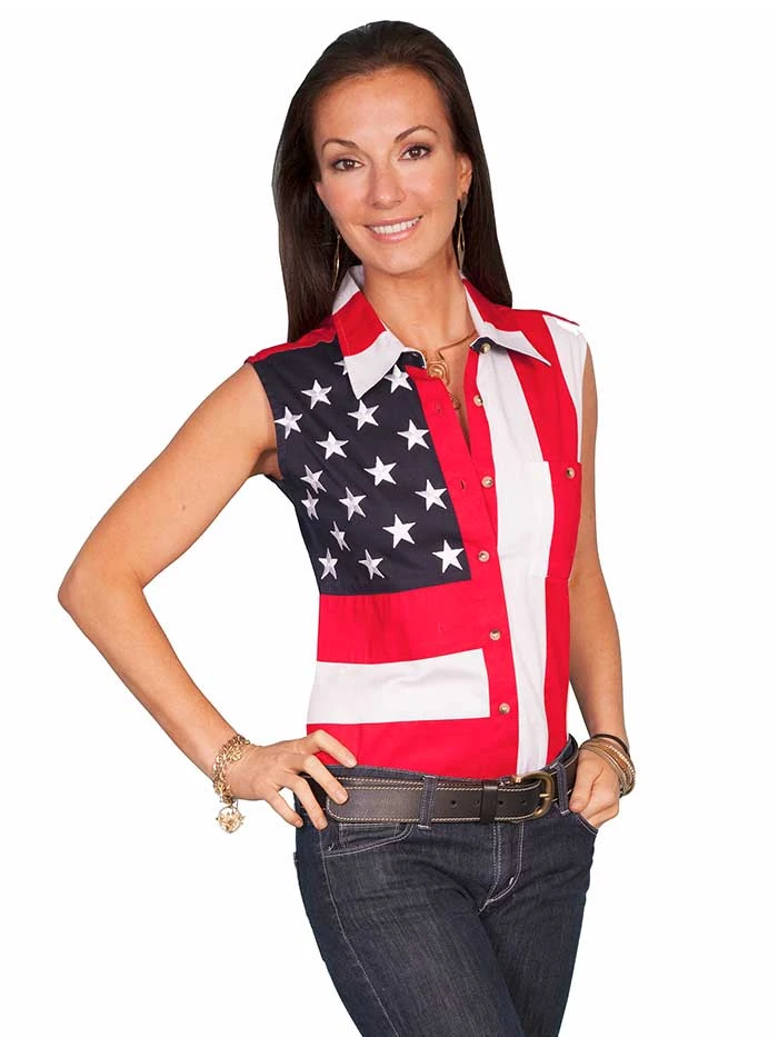 Scully RW029LSS Womens Sleeveless Patriot Western Shirt Bold Stars And Stripes