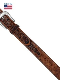 Tony Lama C42525 Rustic Ostrich Belt Brown – Embossed to suggest ostrich skin, this luxe textured belt is finished with a Western-style floral motif and buckle.