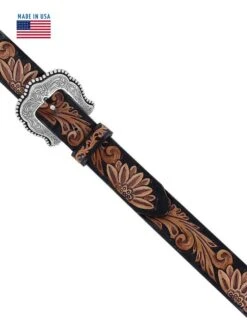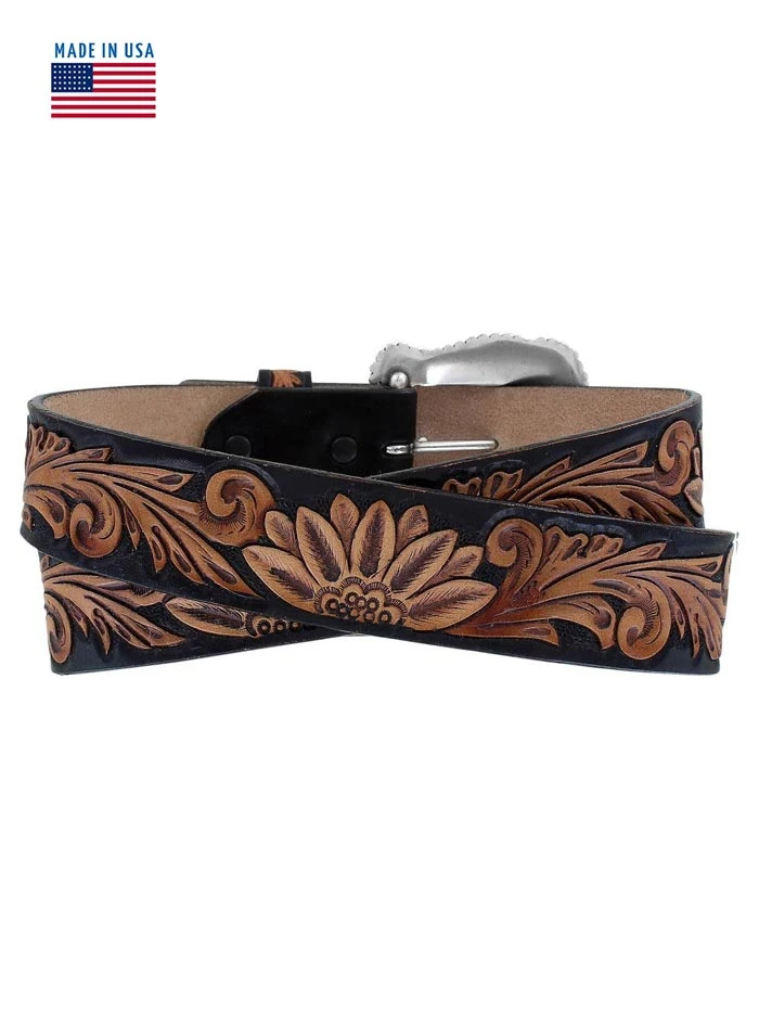 Tony Lama C51263 Womens Daisy Delheart Floral Tooled Belt Black and Tan for Cowgirl