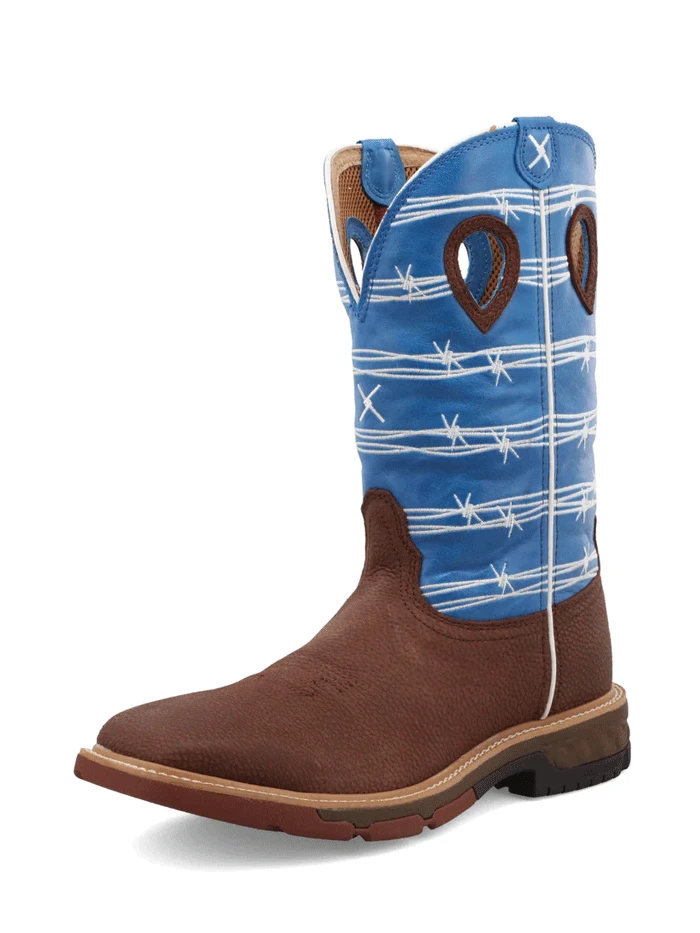 Twisted X MXB0001 Mens Western Work Boot Burgundy And Sky Blue
