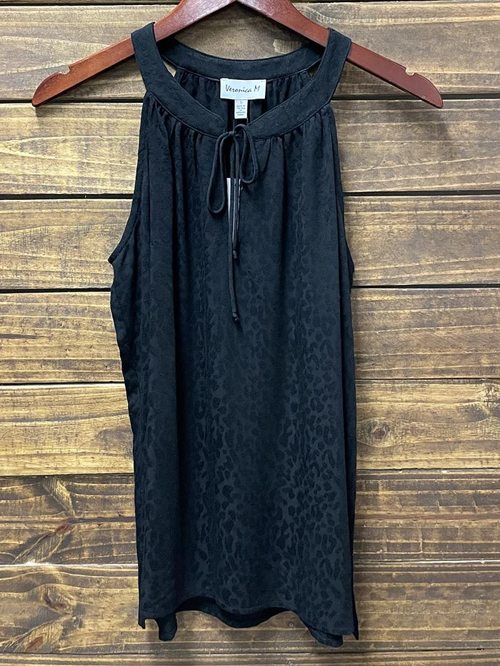Veronica M TF1829-BLACK Women’s Split Neck Halter Top Black USA Made