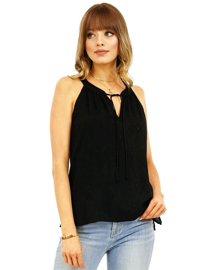 Veronica M TF1829 Womens Split Neck Halter Top Black