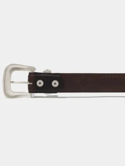 Vintage Bison VB-7011 Mens Dalton Leather Belt Chocolate – With distinctive silver-plated bison conchos flanked by contrast stitching, the Dalton is sure to turn heads. Handcrafted in our third-generation family-owned factory, this American bison belt also features silver plated buckle, keeper, and tip with distinctive details.