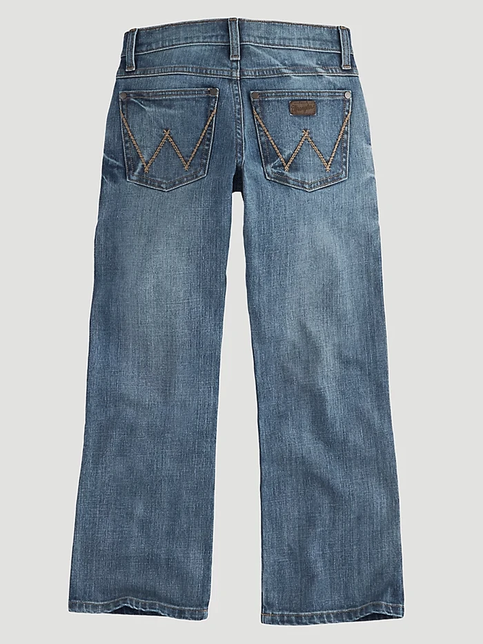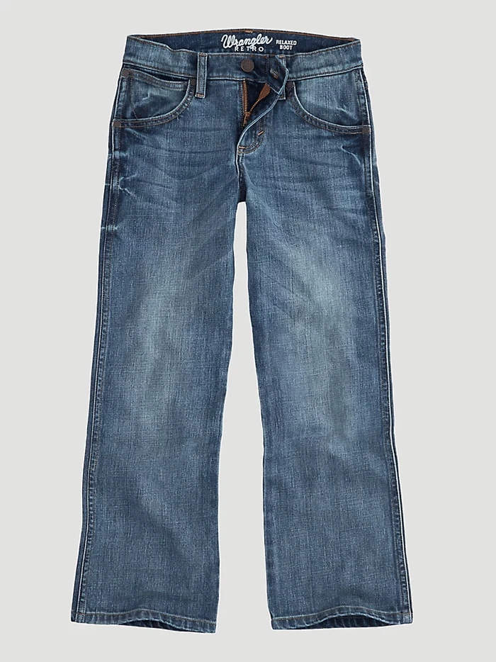 Wrangler 10JRT20GLT 10BRT20GL Kids Retro Bootcut Jean Greeley – Our Retro® Bootcut Jeans have authentic five-pocket styling for a look that is retro-inspired yet decidedly western. The relaxed seat and thigh provide maximum comfort and mobility, while the bootcut leg leaves room for his boots. These will be his new favorite jeans.
