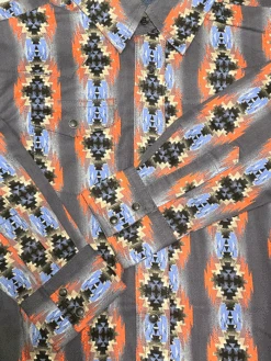 Wrangler 112314896 Kids Long Sleeve Snap Shirt Aztec Print Blue