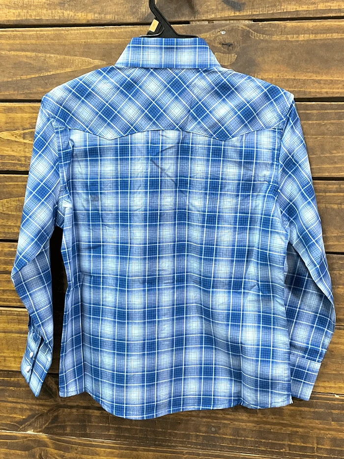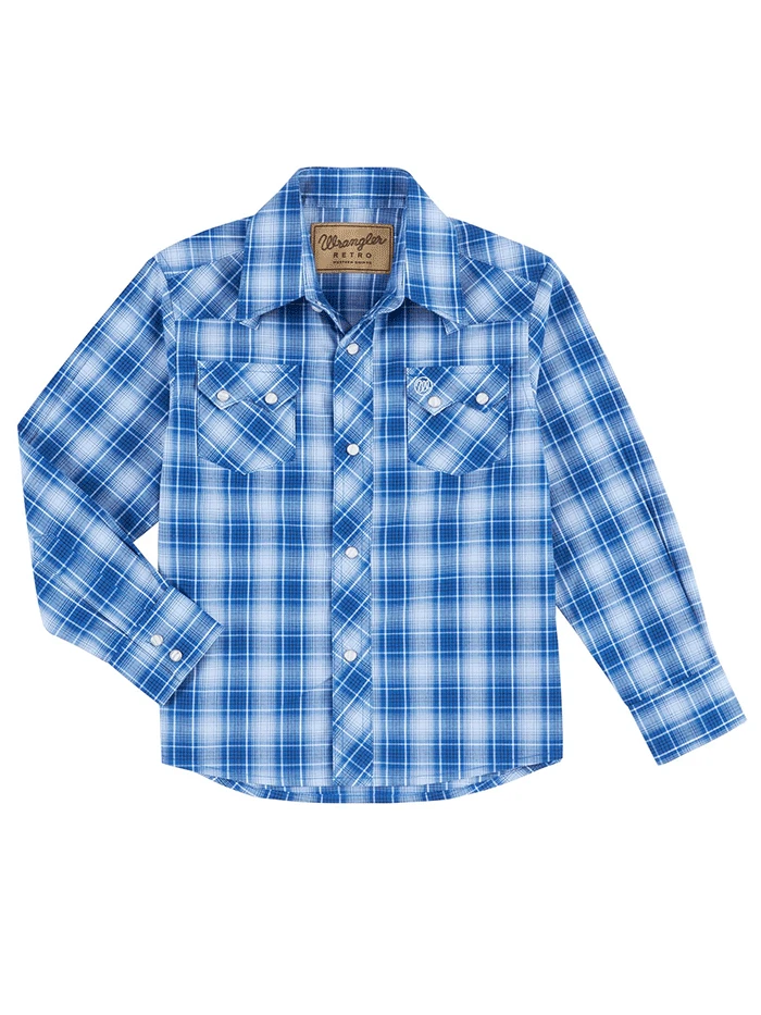 Wrangler 112314912 Kids Long Sleeve Retro Western Shirt Blue