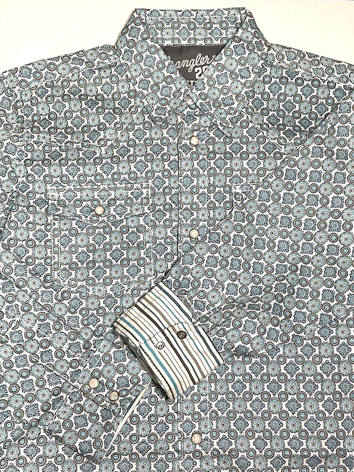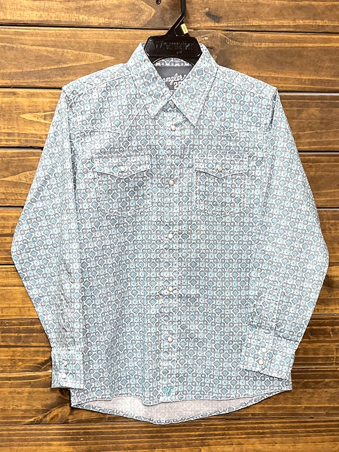 Wrangler 112314974 Kids 20X Advanced Comfort Western Print Shirt TealÂ