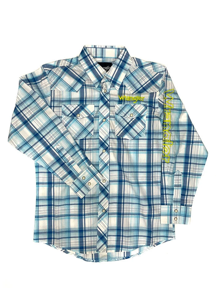 Wrangler 112324694 Boys Logo Long Sleeve Western Shirt Blue