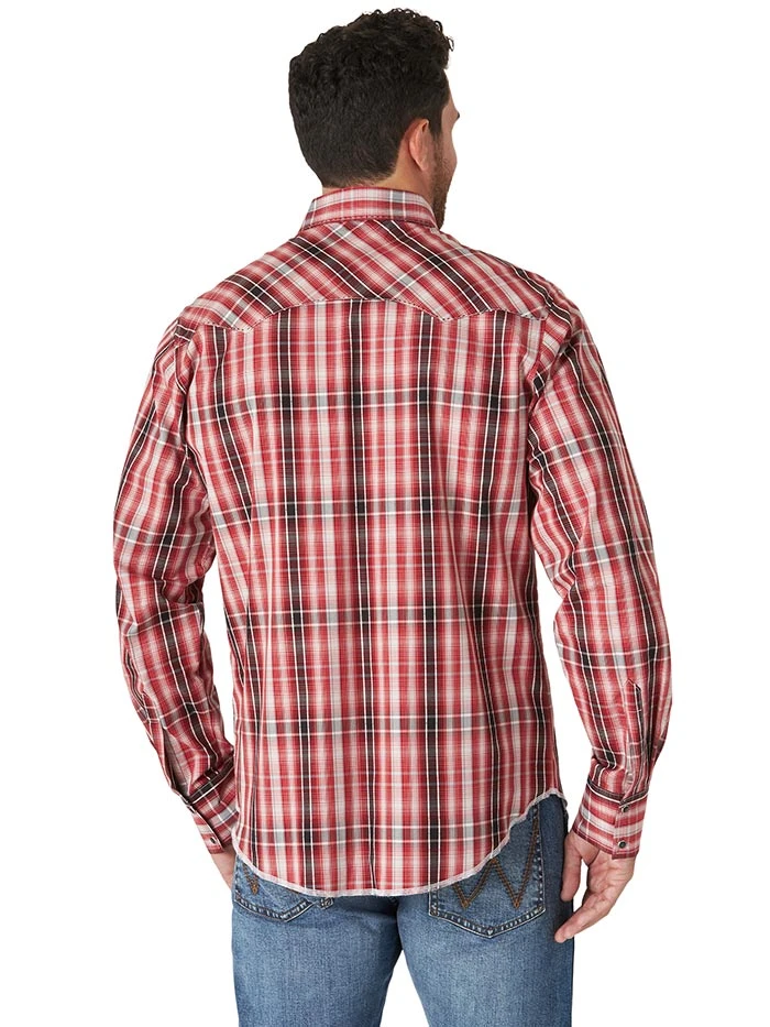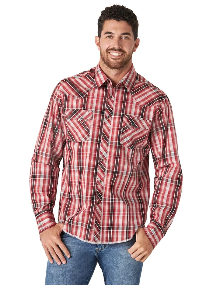 Wrangler MVG302R Mens Fashion Long Sleeve Snap Shirt Pompeian Red
