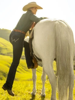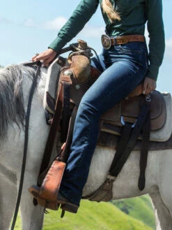 Wrangler WRW60LE Women’s Willow Lovette Ultimate Riding Jean – Riding has never looked or felt better thanks to the Willow, the newest addition to our Ultimate Riding Jean line. On-trend washes and details combine with performance riding features to create a jean that delivers the ultimate in fashion and function. A classic mid-rise fit is enhanced with a slightly pitched waistband that sits lower in the front and higher in the back for maximum comfort and coverage in the saddle, complete with our signature No Gap Waistband. The ultra-flattering silhouette is fitted through the seat and thigh to complement your curves, and is finished with a riding bootcut leg opening that creates the perfect stack. Plus, thanks to fabric with great stretch recovery, it holds its shape throughout the day whether you’re on or off your horse. Whether in the saddle or in the city, the Willow will have you feeling confident and up for every adventure.