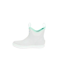 Xtratuf XWAB-102 Womens Ankle Deck Boot Grey -The Ankle Deck Boot collection has been crafted specifically for Off-Shore anglers. Anglers are athletes, and like any athlete they need the best footwear to help them perform at a high level. We’ve created a lightweight design with the same slip-resistant Chevron outsole found in our Legacy boots. The performance ankle deck boot is the perfect boot for any on the water athlete looking for protection with slip-on-and-go styling. This Light Gray boot features a complementary seafoam detail at the sole, pull-tabs and top lining for added style.