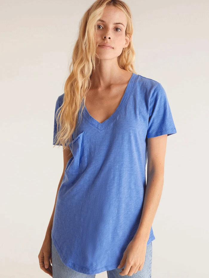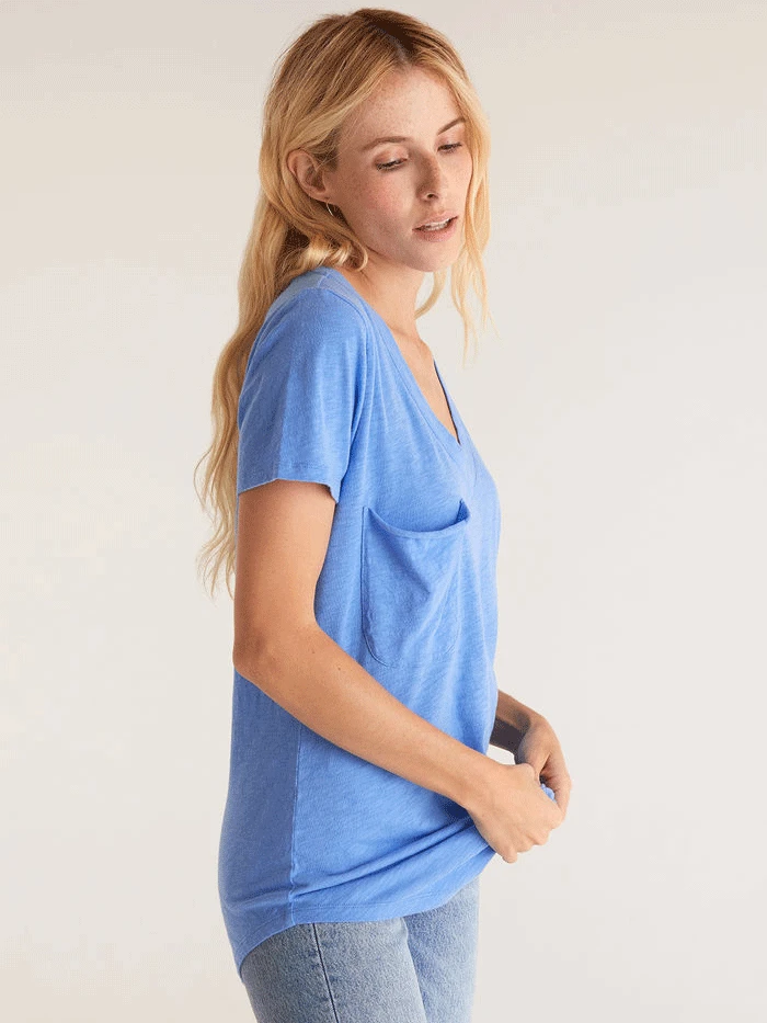 Z Supply ZT191722 Womens Cotton Slub Pocket Tee Pacific Blue